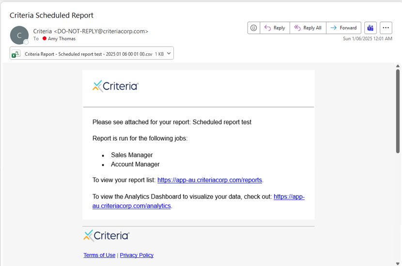- The scheduled report will only be sent to the user who created the report. If other users need access to this report, they can set up a duplicate report to be sent to them (by copying the report you created).