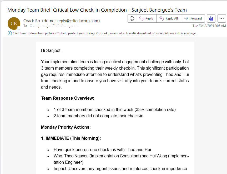 - Share real-world examples: share how you personally use the insights from check-ins to make better decisions and improve their 1:1s.