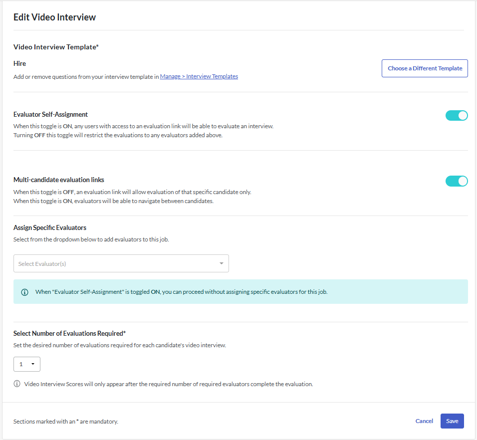 - The Number of Evaluations Required before the Video Interview Scores will become visible.