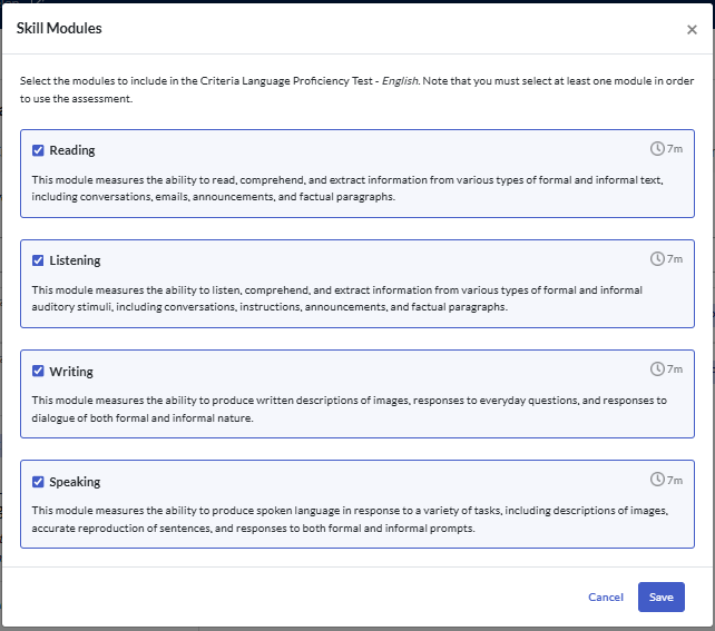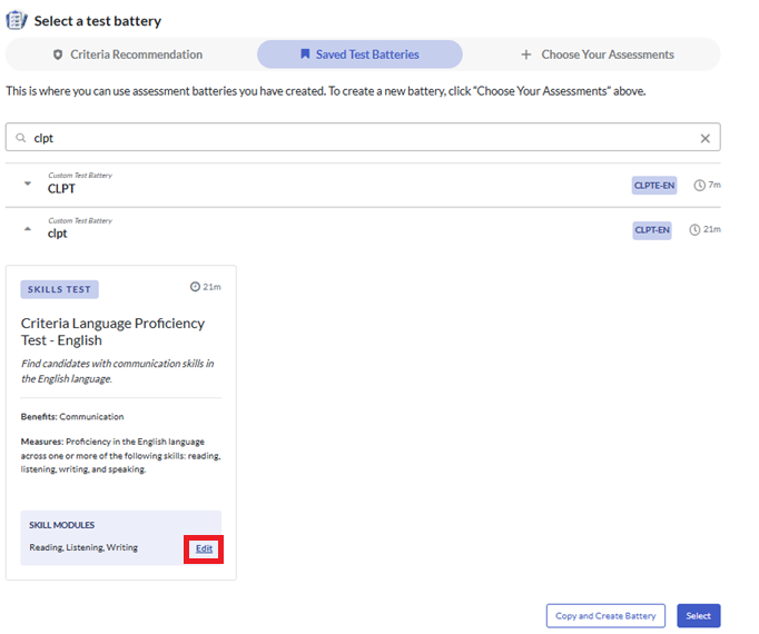 Employers are free to select any combination of modules for the CLPT - English within a test battery, when creating or updating a job.