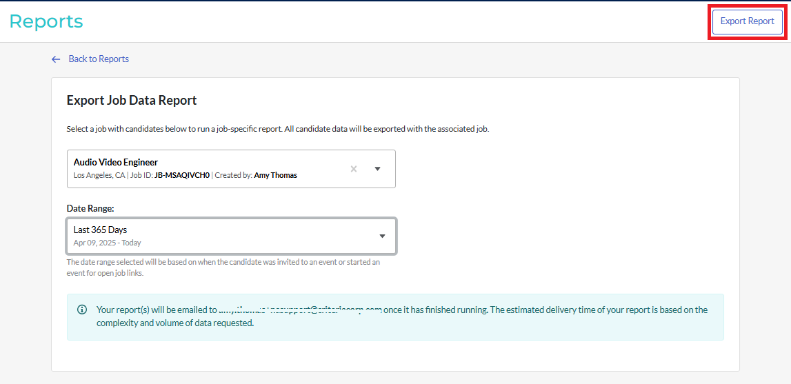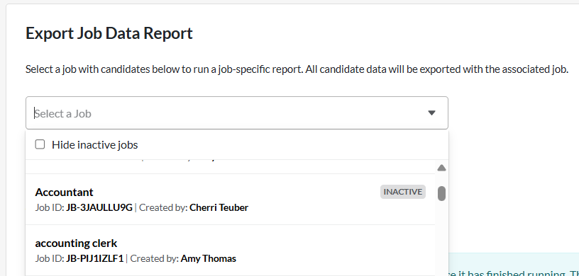 You can only run this report for jobs that you have access to. If you are not an admin user, only jobs that have been shared with you will appear in this list.