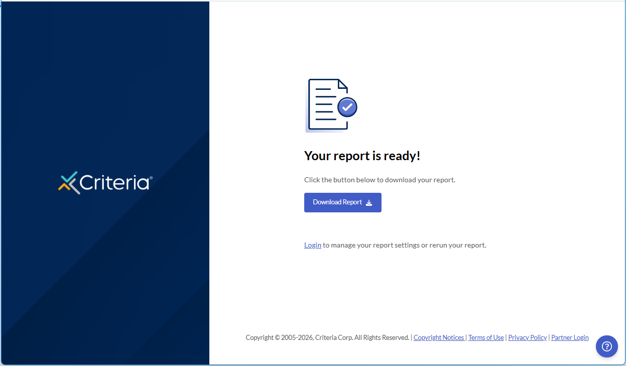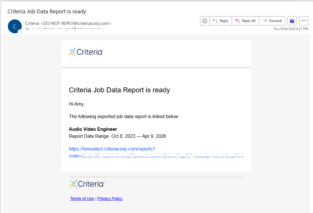 1. An email will be sent from Do-Not-Reply@criteriacorp.com with the subject Criteria Job Data Report is ready.
